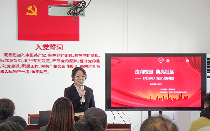 12月4日,时值第十二个“国家宪法日”,我校人文与教育学院法研社11名社员,在傅志军博士、马文婷老师等法律专业教师带领下,与黄路居委联合举办“法润校园 典亮社区”《中华人民共和国民法典》普法公益讲座。活动旨在推动法律知识走进社区、贴近群众。来自社区的干部、居民组长与我校师生代表共同参与,现场学习氛围浓厚。